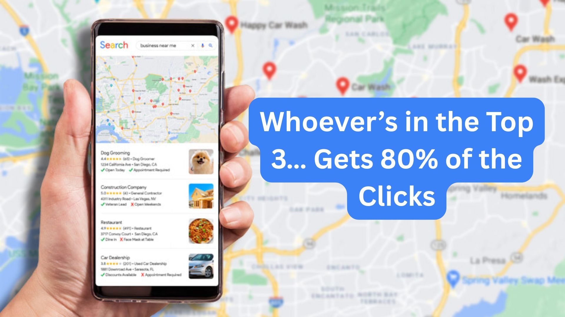 We promise top 3 placement on Google Maps within 90 days. If not, you’ll receive a full refund